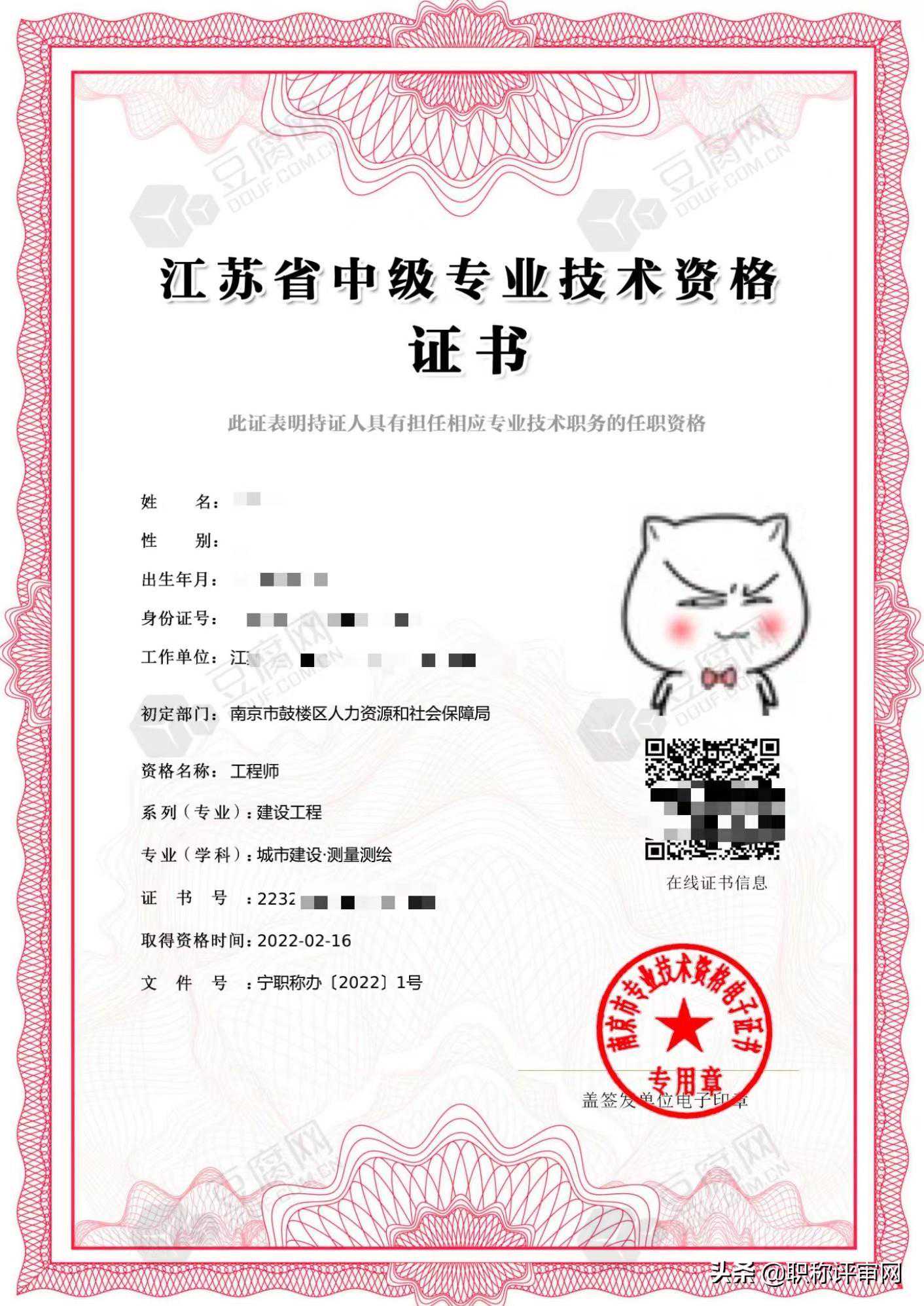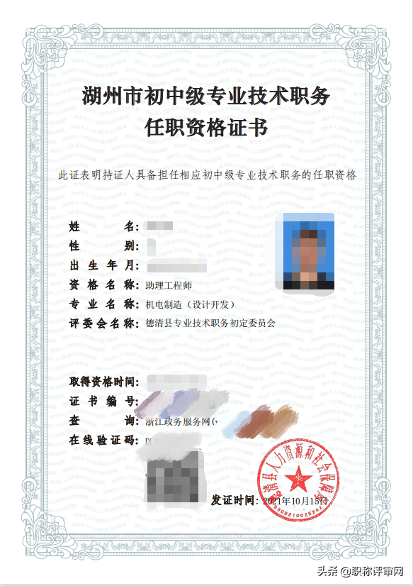 这是浙江省的助理工程师证书模板