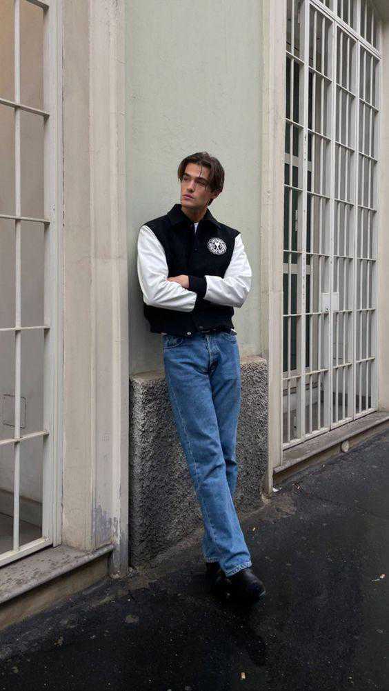 利用黑色系的同时,也别忘记了百穿不腻的牛仔裤,特殊的耐抗面料赋予了款式足够的硬核感,直筒宽松版型成就造型随性感,在与深黑上装的搭配中酷飒显型,色彩结合很简单但不一般。