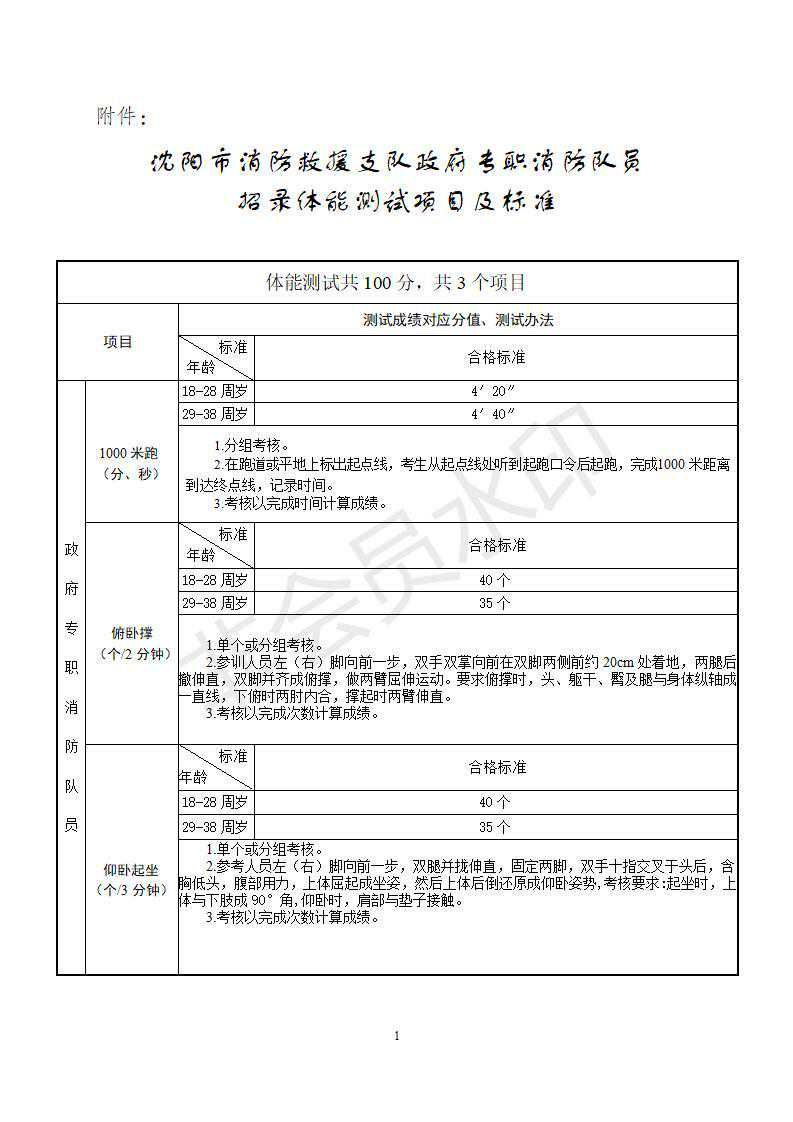 沈阳市消防救援支队政府专职消防队员招录体能测试项目及标准