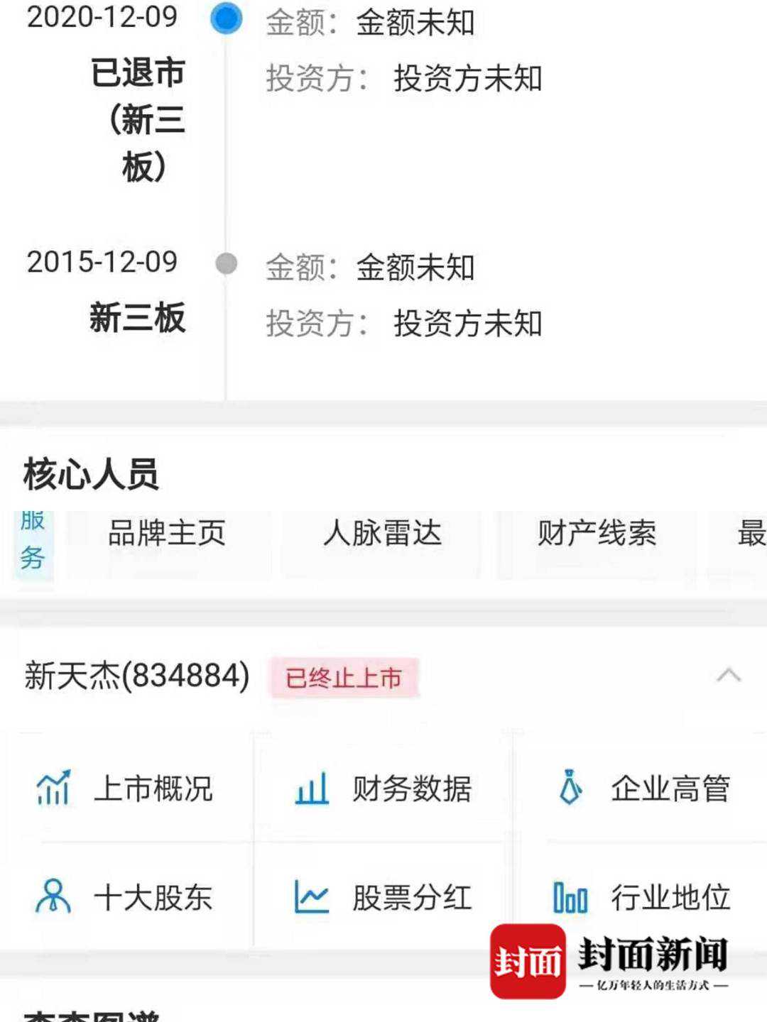 据“企查查”资料,显示“新天杰”已于2020年12月9日从新三板退市,为什么还得到了“上市”这1分呢?蔡睿表示,“新天杰”确实提供了公司上市的资料,“专家只针对公司提供的材料打分,至于材料的真实性,我们还要核查,一旦发现作假,不仅取消资格,而且还要没收250万元的保证金。”