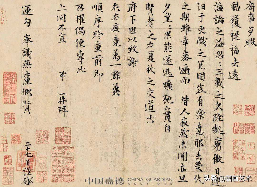 此件《过访帖》北宋纸本,行草书十行,为曾纡存世为数不多的作品之一。经南宋“珍绘堂”收藏,又迭经清乾嘉时名士钱泳及近代天才鉴定家张珩及名藏家谭敬、张文魁递藏。与曾巩《局事帖》同在1996年那场被载入拍卖史册的《上海张氏涵庐旧藏——宋元翰牍明清书画精品》专场释出。