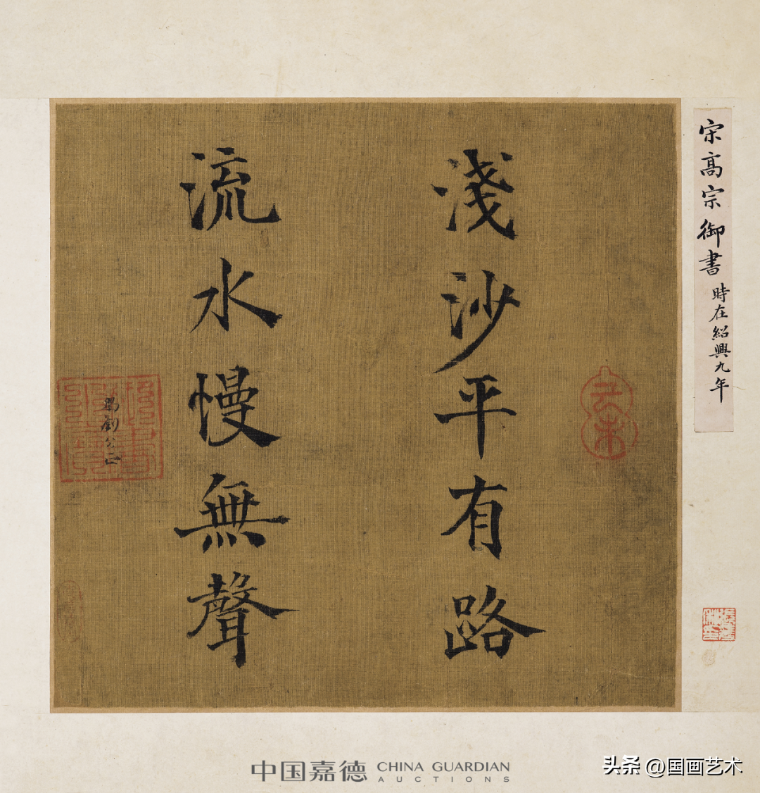 另徐邦达先生于《古书画伪讹考辨》的《南宋帝后题画书与院画》一章中,收入本卷一、三、四幅,认定第一幅即为日本藤井有邻馆所藏《南宋四朝集锦》册之一,并在1978年出版于大阪市立美术馆所编的《宋元之美术》中,是他所见高宗存世作品十件真迹之一。而徐老将第三幅光宗、第四幅宁宗归至理宗名下。