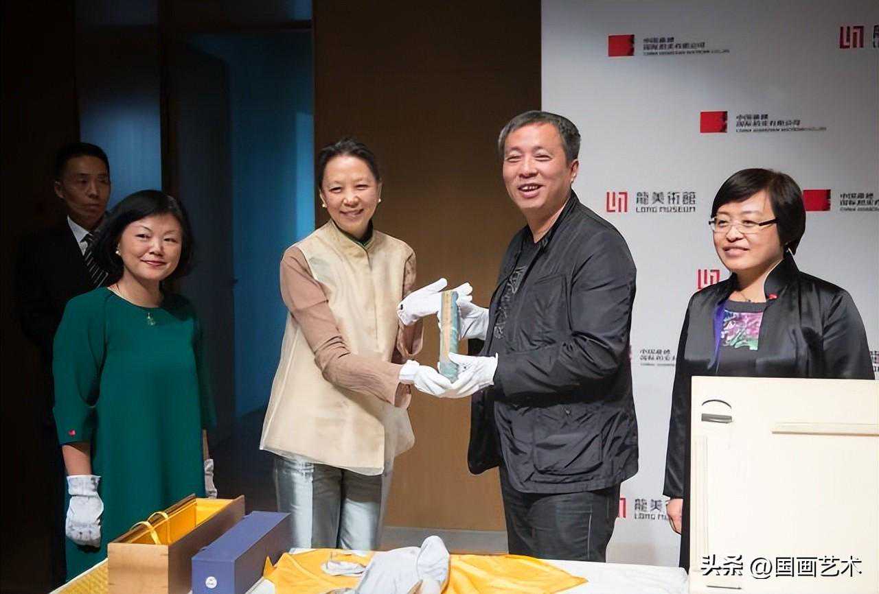 中国嘉德副董事长王雁南与龙美术馆创办人、著名藏家刘益谦交接《平安帖》
