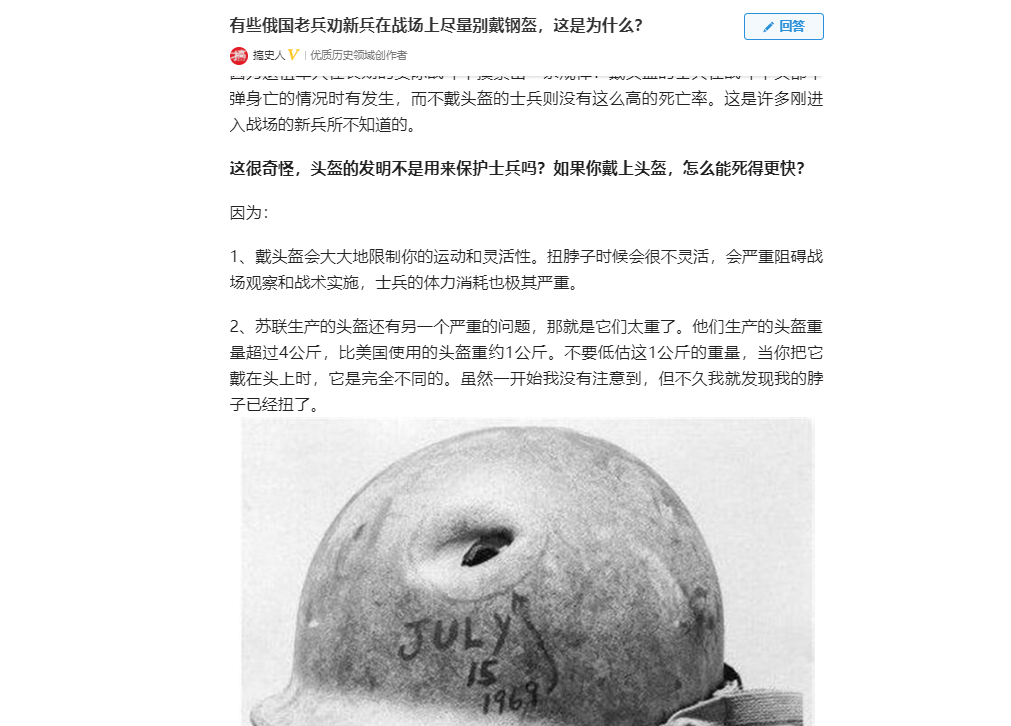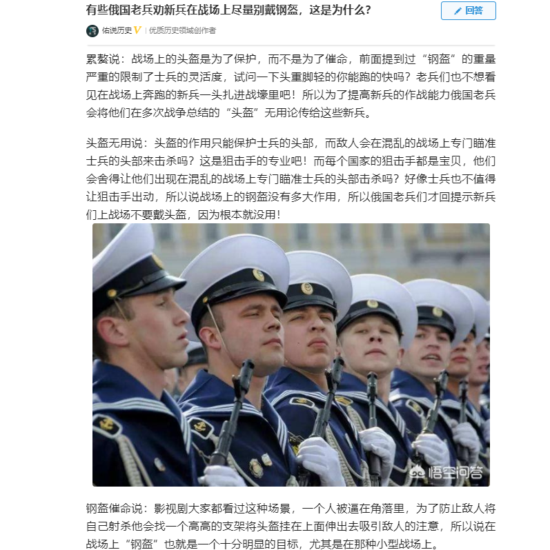 关于钢盔的这几个梗,实际上搜一搜照片,就能看出个结果来,但是,这些营销号根本不看,都是一个抄一个,甚至拿着图不对文的照片就在那胡扯。其实解释都是大同小异,基本就是一个文章来来回回的抄,不断地抄,虽然版本不同,但是核心意思是一致的,虽然有抄错的,但是并不影响意思。而对于真的东西,看都不看。