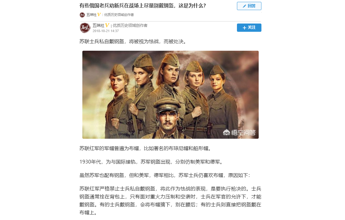 昨天聊了聊关于苏联女兵穿裙子打仗的一个梗,然后突然想起以前几个关于钢盔的梗。大体上就是“二战苏联士兵为什么不戴钢盔”、“二战日军戴钢盔之后伤亡率增加”、“印军为什么不戴钢盔”、“越南为什么到现在还是带......