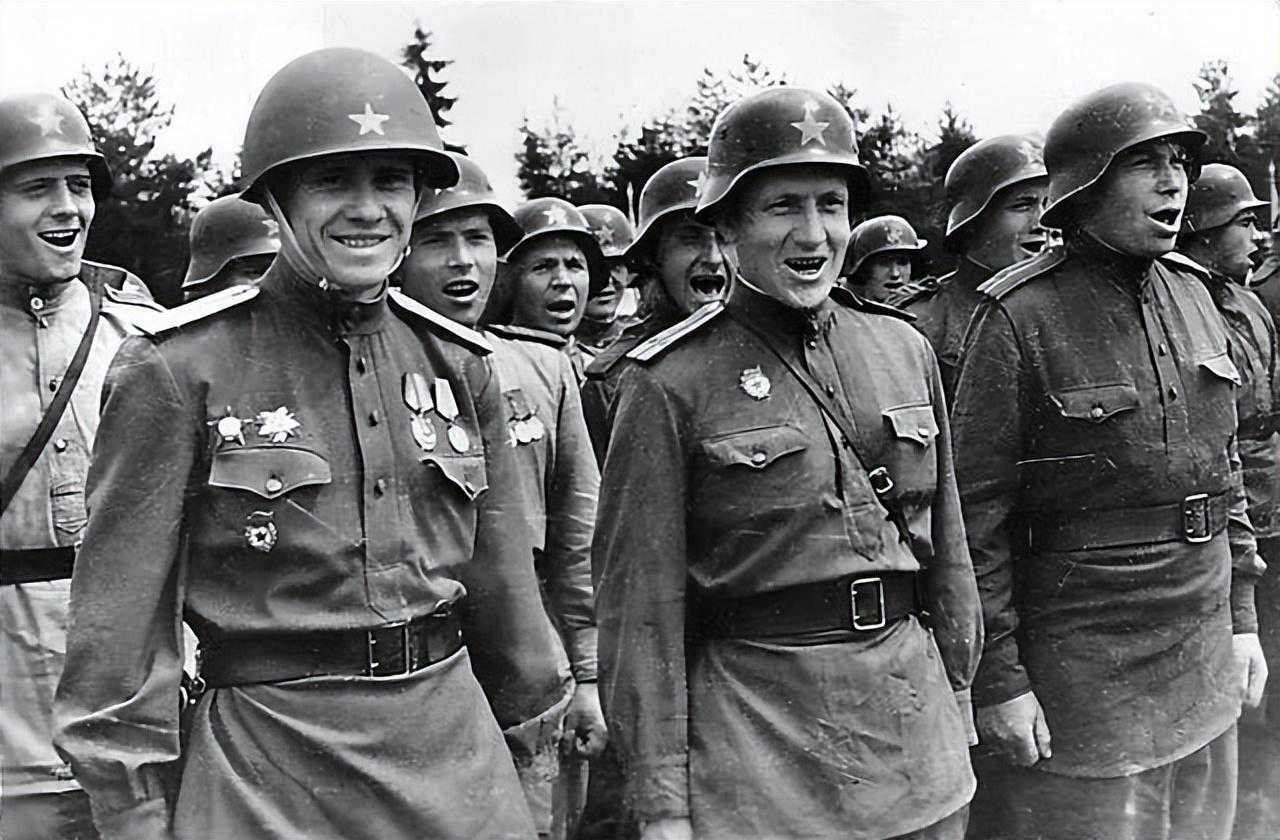 实际上苏联人都是想尽办法弄钢盔的,不少照片里苏军把缴获的德军钢盔涂个颜色,涂个红星就自己用了。要是苏联老兵连自己钢盔都不戴,舔包德军的戴干嘛?这不是矛盾么?
