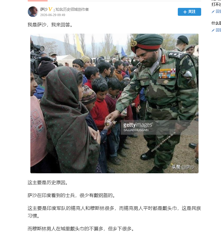 再就是下面这个:我是萨沙,我来回答,萨沙在印度看到的印度士兵很少有戴钢盔的。