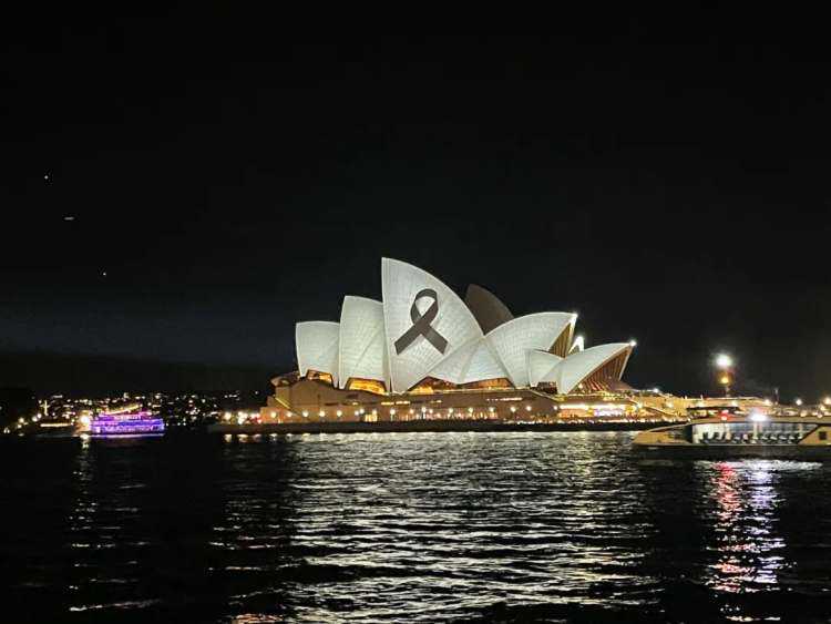 4月15日,悉尼歌剧院亮起悼念逝者的