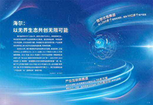 自创立以来,海尔集团始终坚持品牌自主创新,截至目前,已在全球设立10家研发中心、35个工业园、143个制造中心和23万条销售网络。2019年至2023年连续5年作为全球唯一物联网生态品牌入选“BrandZ最具价值全球品牌100强”,2009年至2023年连续15年稳居“欧睿国际全球大型家电品牌零售量”第一名,旗下子公司海尔智家2018年至2023年连续6年入选《财富》世界500强。作为中国家电企业出海创业的代表之一,海尔加速推动由“产品出海”向“品牌出海”转型升级。
