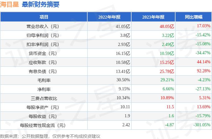 据证券之星公开数据整理,近期海目星(688559)发布2023年年报。根据财报显示,本报告期中海目星增收不增利,应收账款上升。截至本报告期末,公司营业总收入48.05亿元,同比上升17.03%,归母净......