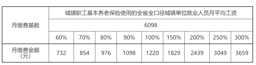 二、2023年参加城镇企业职工基本养老保险的无雇工的个体工商户和灵活就业人员各档次的月缴费金额如下: