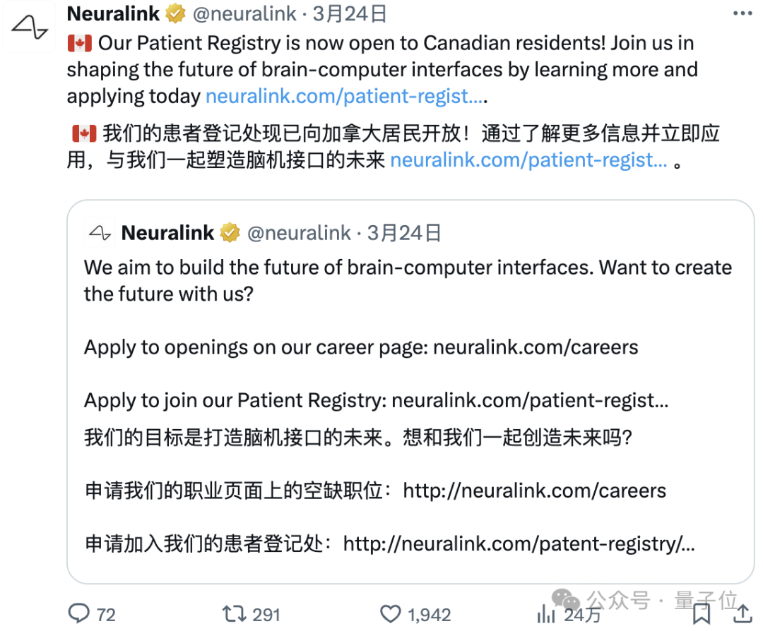 OMT这两天,Neuralink又开始大力招志愿者了,范围也从美国扩展到了加拿大。