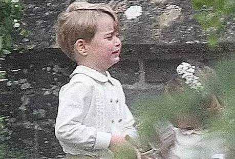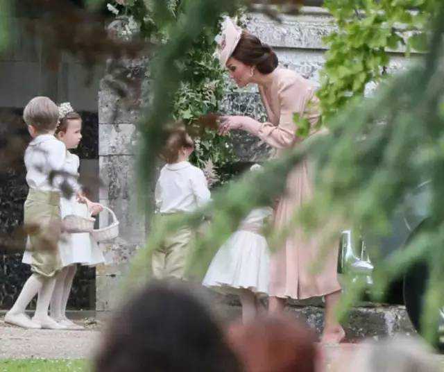 当时,凯特王妃带着小王子参加自己妹妹Pippa的婚礼。在Pippa跟新婚丈夫挽手走过一道拱门的时候,小王子乔治从Pippa后面走过去,踩到了她的婚纱。