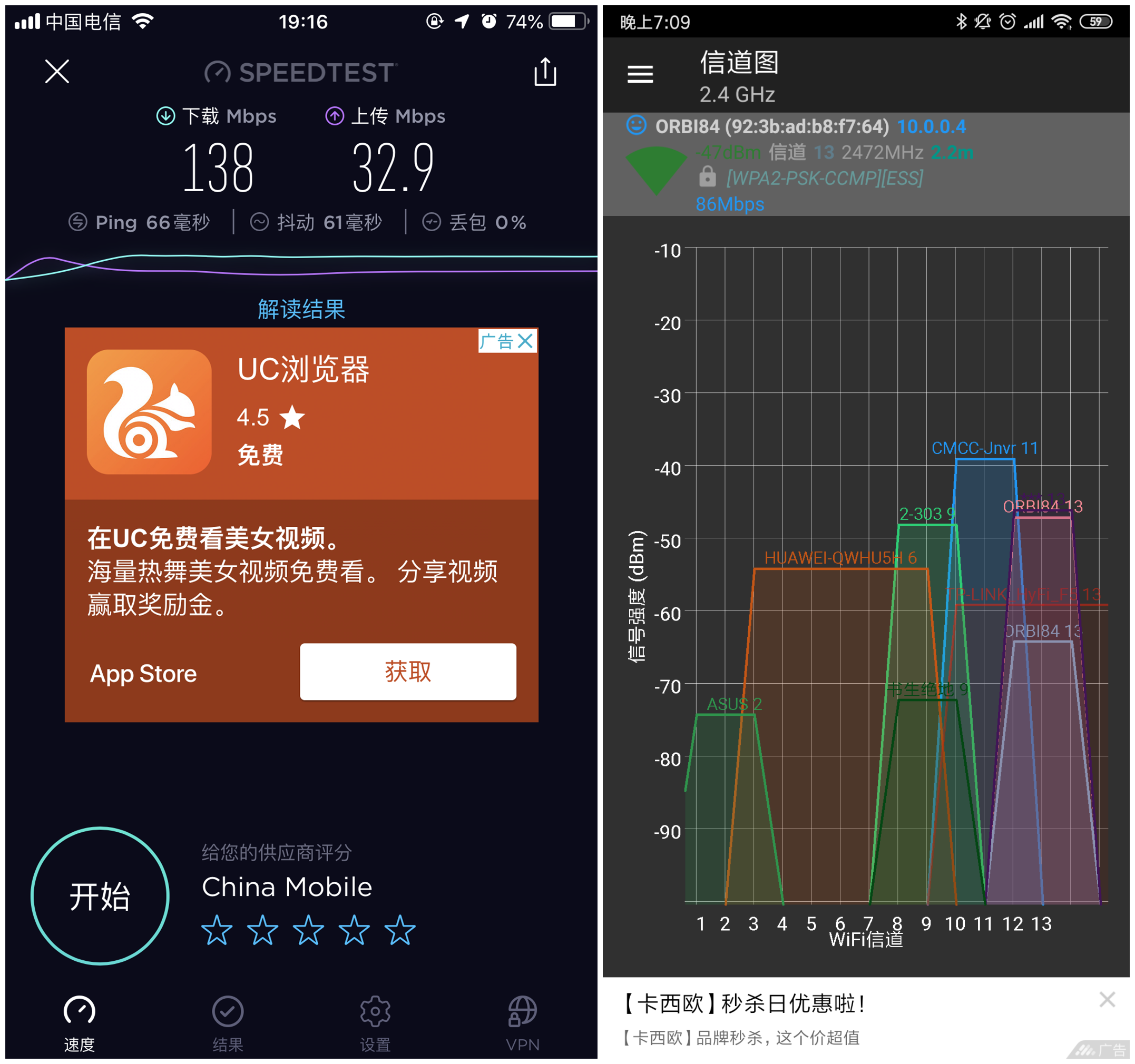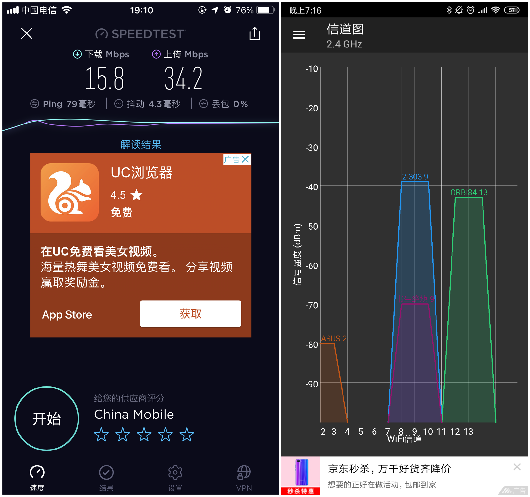 OrbiRBK50在没有格挡物的情况下基本上能够跑满带宽下载有138Mbps,可是在有格挡物墙信号就下降的有点快了,信号在C点质量还是不错的,到B点之后有着明显的下降第一距离较远第二就是由个格挡物的原因造成的,而在二楼不仅有墙地形还比较复杂就造成信号质量不如一楼的好另外就是3楼完全就是靠2楼分路由在撑着所以不如二楼信号质量。而信号质量以及网速都是有手机连接orbi所测得,相对于一般的路由器信号水平来书已经算是不错的了。