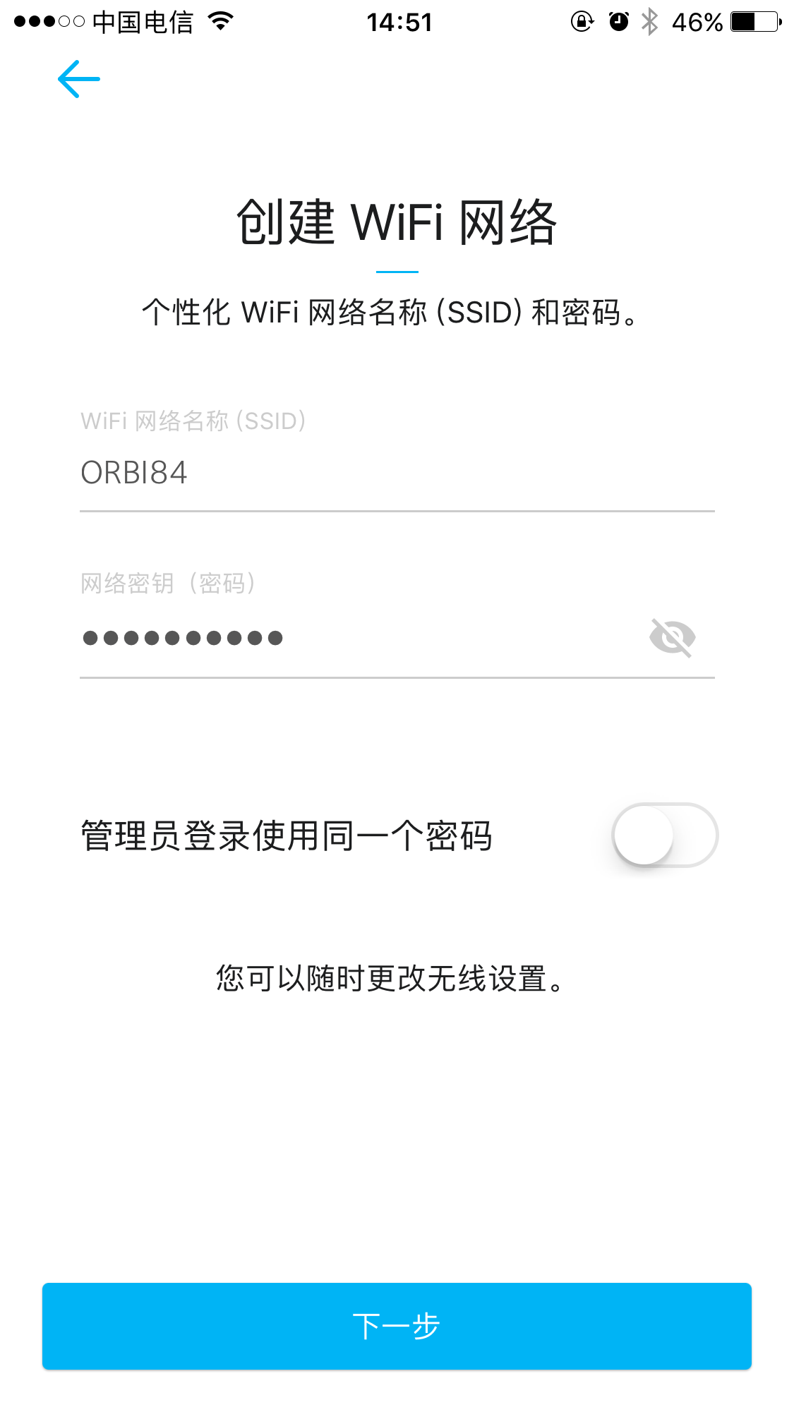 连接完成后就是普通设置路由器的WiFi密码等步骤。