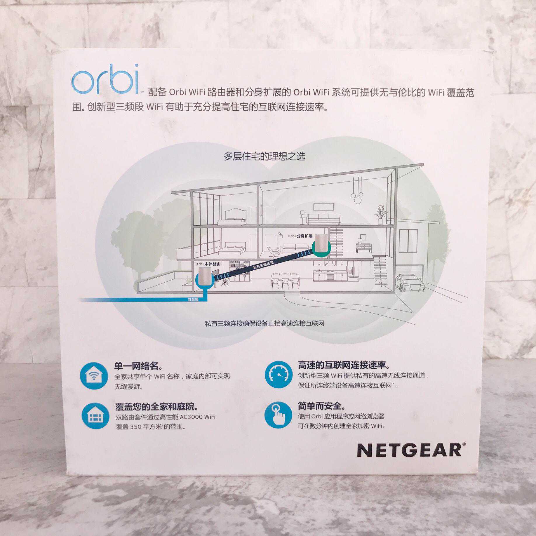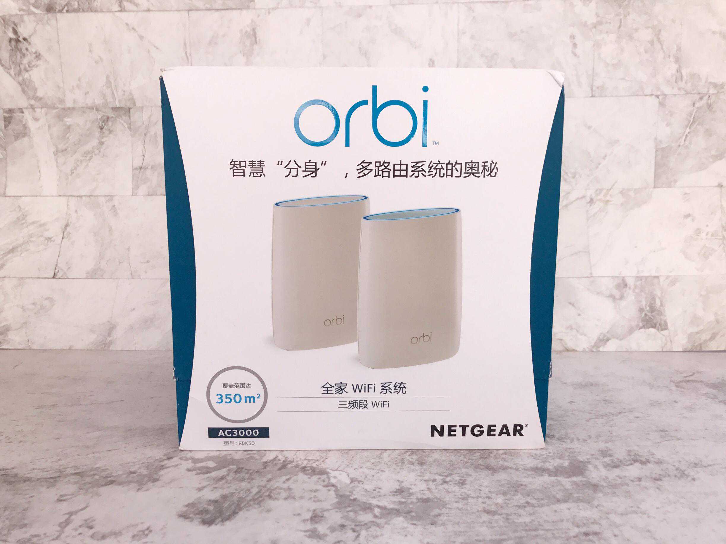 现在就有能够解决以上问题方法就是入手Mesh分布式路由器,优点就是可以无缝切换就是用户使用的手持设备在不同位点可以自由寻找信号最好来传输数据;另外就是可靠性高它会自动修复连接在信息质量上也有保障。我今天给大家介绍就是这样一款Mesh分布式路由器——美国网件OrbiRBK50。