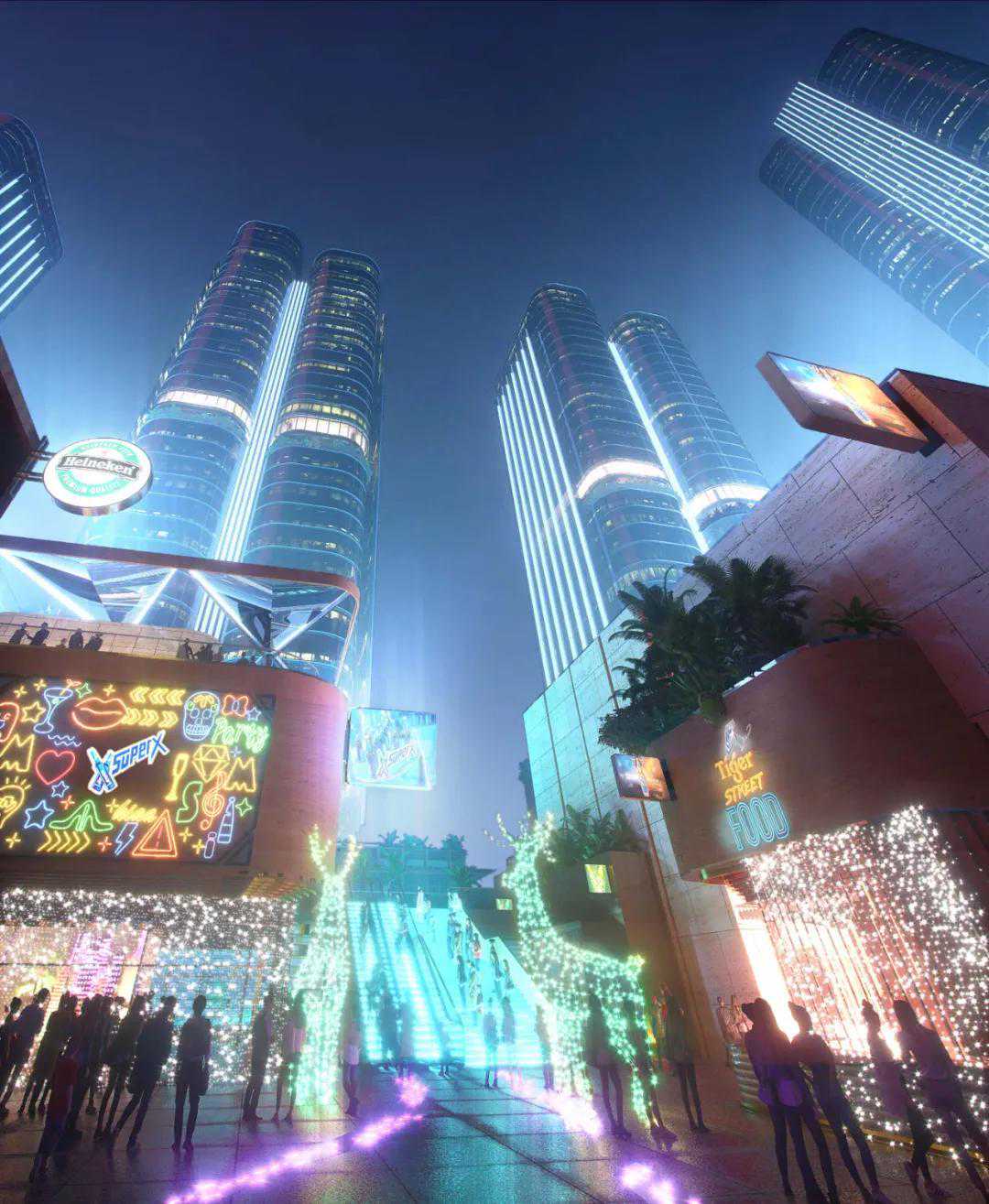 充足的空间与巨型屏幕,可让人们一同观看世界杯比赛,或是作为音乐节的场地。此外,该场地还可举办线下比赛,近距离观赏活动等。