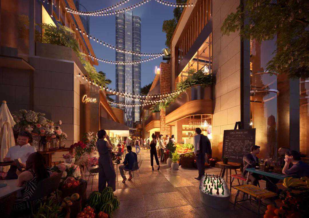 以大量自然景观和沿新圳河打造的滨水乐活体验,回应宝安山海城市格局的同时,以自然内生的开放性,打破产城界限,形成城市全新街区,汇聚人群。