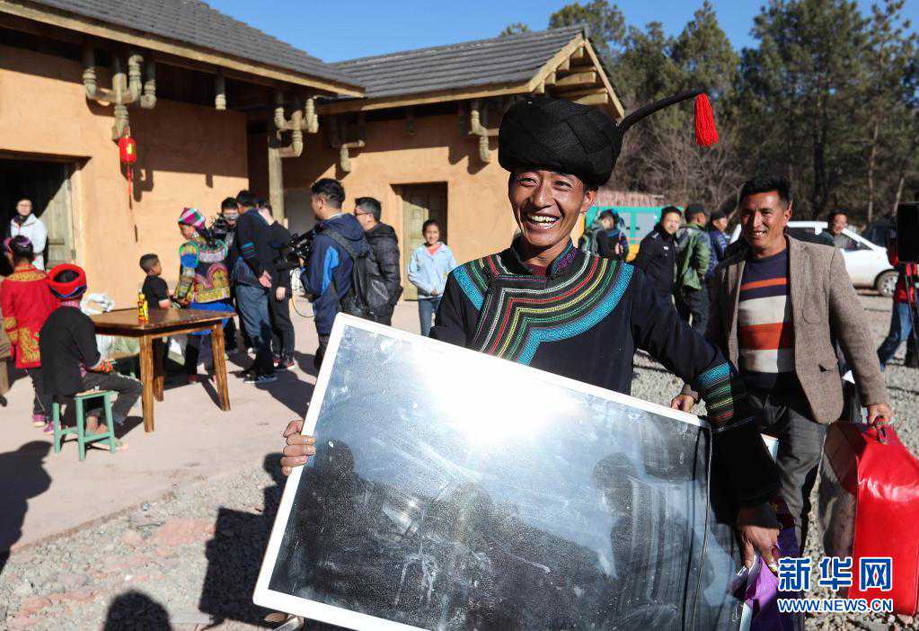 在四川省昭觉县三河村的易地扶贫安置点,彝族群众马海日聪喜搬新居(2019年2月11日摄)。新华社记者江宏景摄