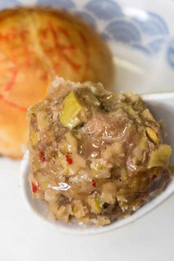 新鲜出炉的月饼酥皮层层分明,肉团喷香紧实。最外层的皮子烘得酥脆,里面则被肉汁浸润,软软糯糯,一口咬下去肉汁喷涌,油香肉滑,还带了点面粉的回甘,真的是烫了舌头也停不下来。