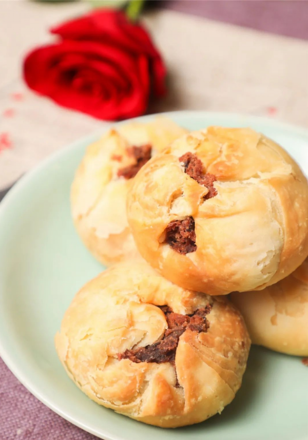 玫瑰豆沙月饼是上海人的经典口味,用大红赤豆磨出来的豆沙香气馥郁、绵软细腻,加入糖玫瑰后虽甜但独有一份清香。