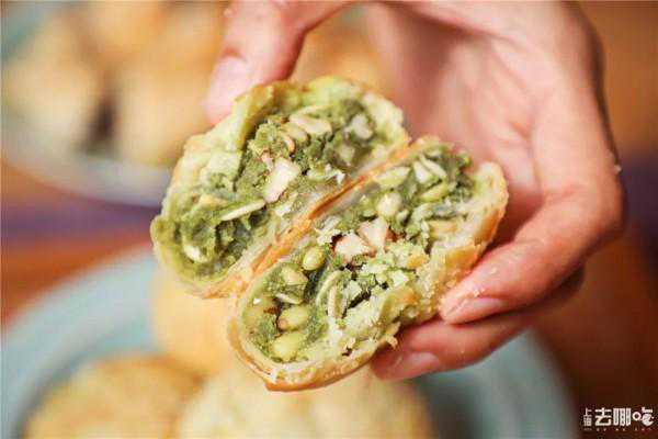 一咬开便能看见绿汪汪的苔条馅,里面藏满松子仁,苔条香如海浪席卷舌尖,鲜鲜的海味里“闪烁”着上海人喜欢的甜,甜与咸的配比,拿捏得刚好,一点也不腻口。