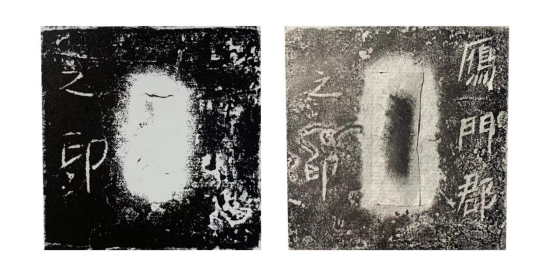 隋唐官印除了印面尺寸、钮制、印文用印制度方面不同隋唐之前以外,还有一个显著标识,就是官印在制作过程中出现的背款。秦汉时代,官印基本不署款。这也是后来文人篆刻款识的滥觞,隋唐官印背款大多凿刻,内容大多为印面释文和制作、颁发印章年月的文字。诸如隋“广纳府印”印背上镌有“开皇十六年十月一日适”,唐中书省之印、武夷县之印、平琴谢之印均有释文背款。这些背款文字有的凿刻一行,有的分两行,大多为楷书。学界对背款问题有两种说法,一种为释文加年款的定为隋代,一种为单有印面释文的定为唐代。但从现有资料来看唐代官印未发现有年款的,隋代官印也有无款的。格式上有做一排凿刻的,也有做两排凿刻的。故宫博物院藏“中书省之印”背款分两排凿刻“中书省”三字已剥泐不清,“之印”两字清晰可见,与“雁门郡之印”背款“之印”比对,字体风格大小及凿刻的位置如出一人之手。不知当时是否是官方严格要求的定制,但从多件唐官印中发现此背款至少也可以认为是当时的制作习尚,或许也是约定俗成。