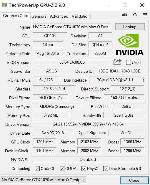 GTX1070withMax-QDesign是英伟达Max-Q方案中继1080Max-Q方案后又一明星产品。功耗相比标准的移动版1070大大降低,但是性能依旧可以达到其90%左右,相比1080Max-Q与M1080之间的折损来说更为理想。