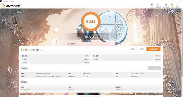 3DMarkTimeSpy测试得分5355分。