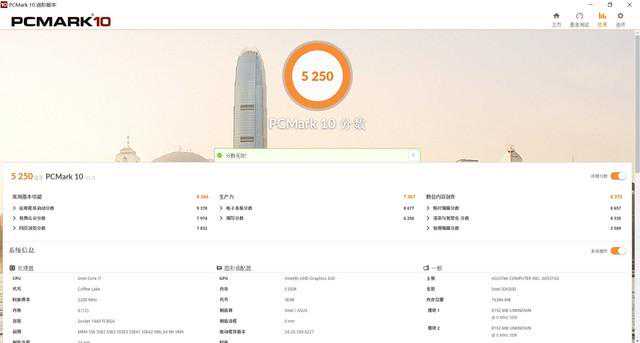 PCMark10最终得分5250分。