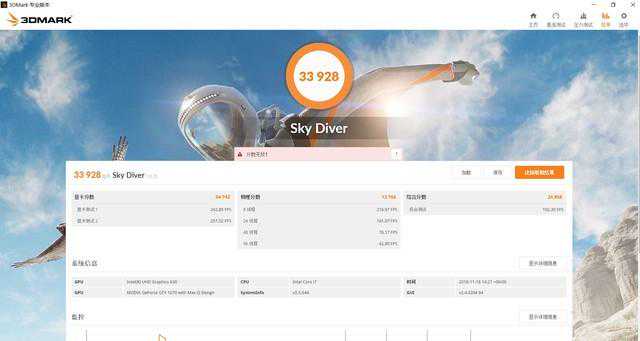 3DMarkSkyDiver测试得分33928分。
