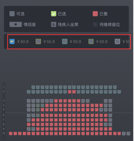 大多数影厅分区域定价开始于今年上半年。陈霖表示,“有些厅放出19.9元的特价票,点进去一看就角落一两个座位19.9元,其他都卖35元。被用户举报过是‘价格欺诈’,这其实是商家吸引眼球的一种手段。”