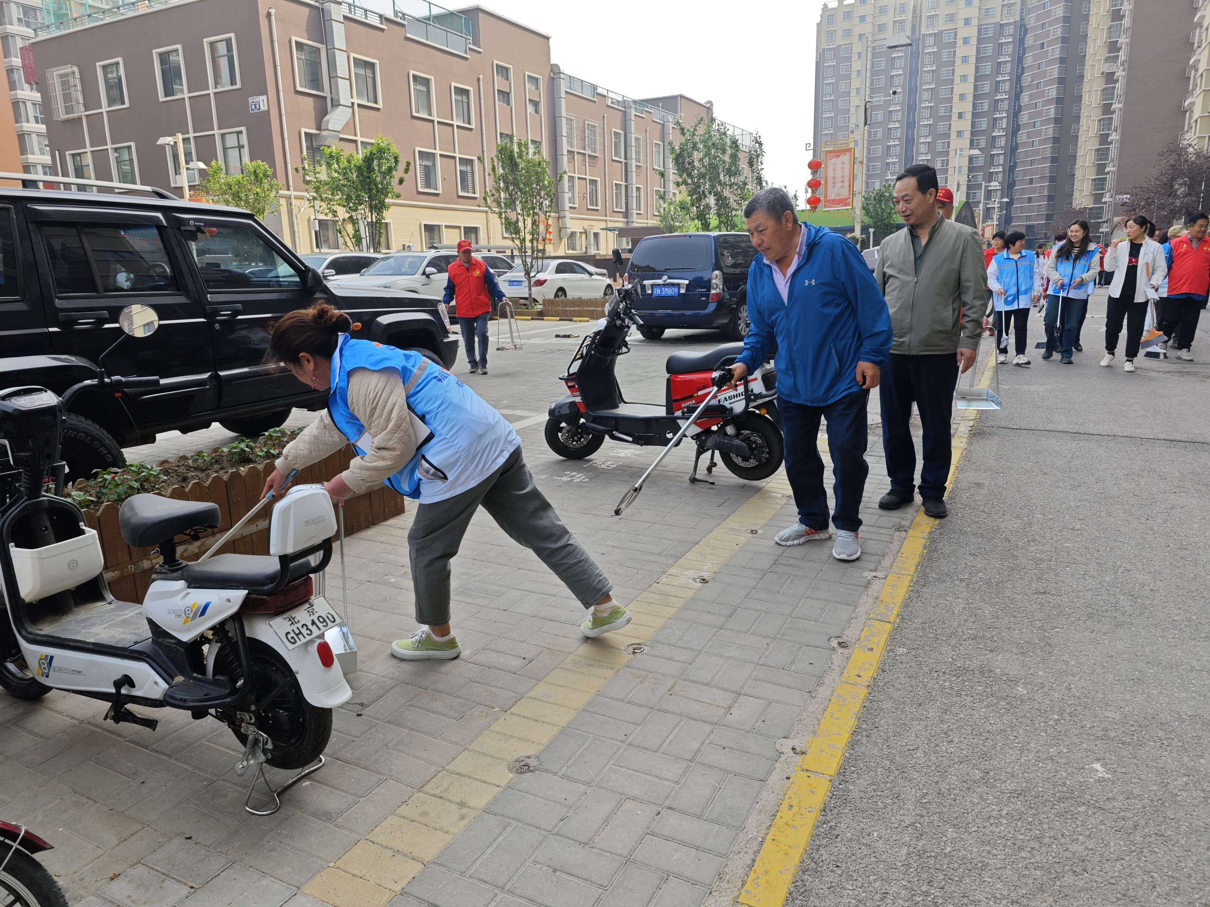活动中,党员们拿起扫帚、簸箕及夹子等清扫工具,分工有序地深入到社区的各个角落,针对辖区道路、车库、车棚、居民楼四周等公共区域展开全面的“大清扫”,有的用簸萁清除雨水篦子中积存的枯枝落叶,有的用扫帚清扫车棚和道路的地面,有的探身从绿化带中捡出废纸、塑料袋。