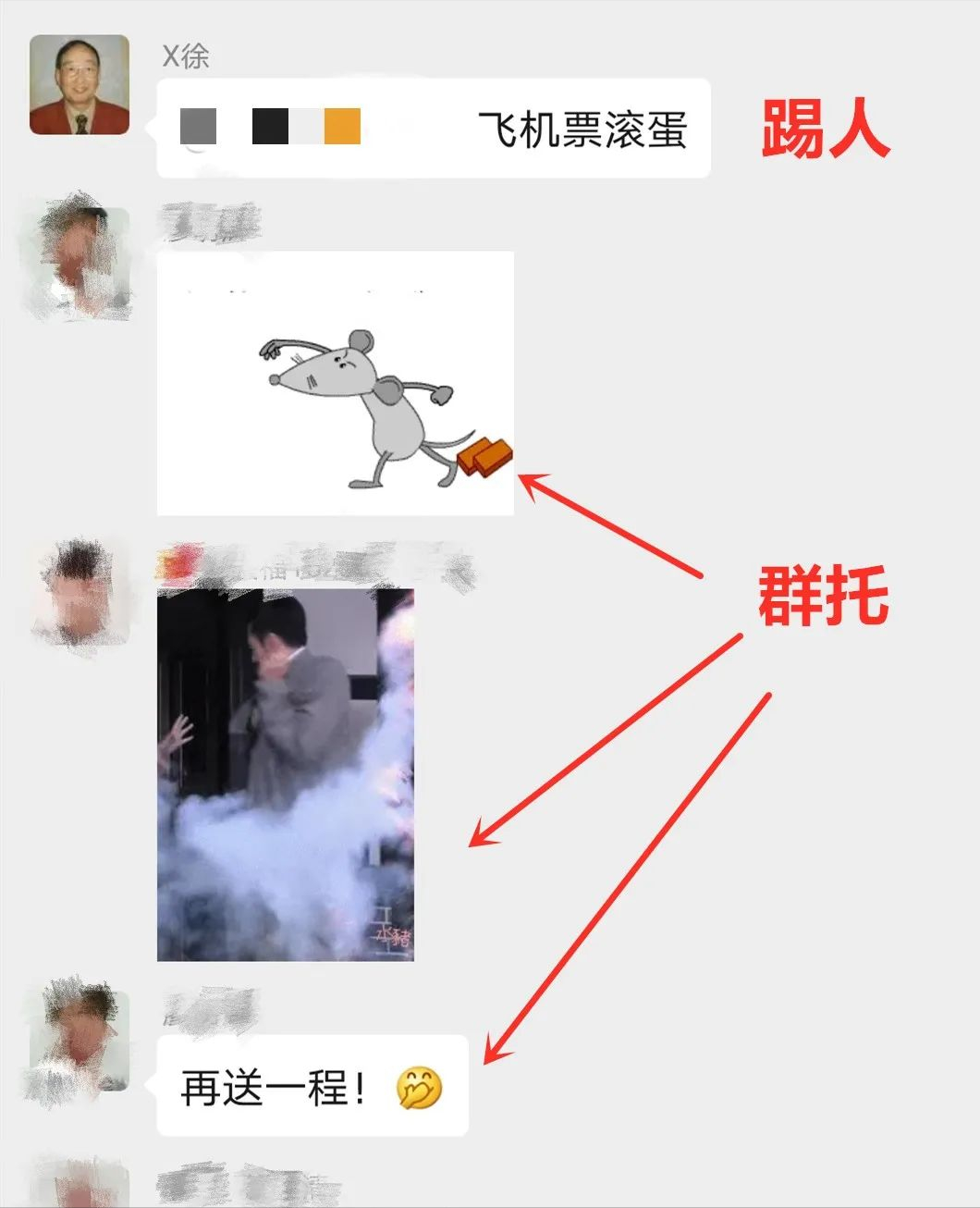 另一方面,老徐像个“土霸王”一样管理微信群。主要两条:拉人和踢人。群主具有“至高无上”的权利,随时可以把群友踢走。因此,群友即使有想法和疑虑,往往也是敢怒不敢言。