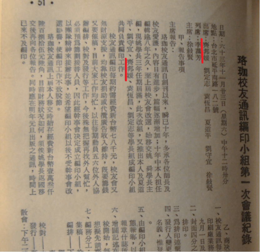 齐邦媛担任台湾《珞珈》校友通讯编印小组成员