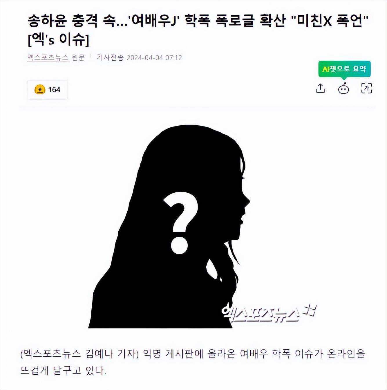同时,随着围绕女演员宋昰昀的校园霸凌真相之争日渐展开,韩国网络上匿名公告栏上发布的针对女演员的校园霸凌问题在网上升温。4月4日,揭露另外一名女演员校园霸凌的帖子在韩国各个网络社区传播。