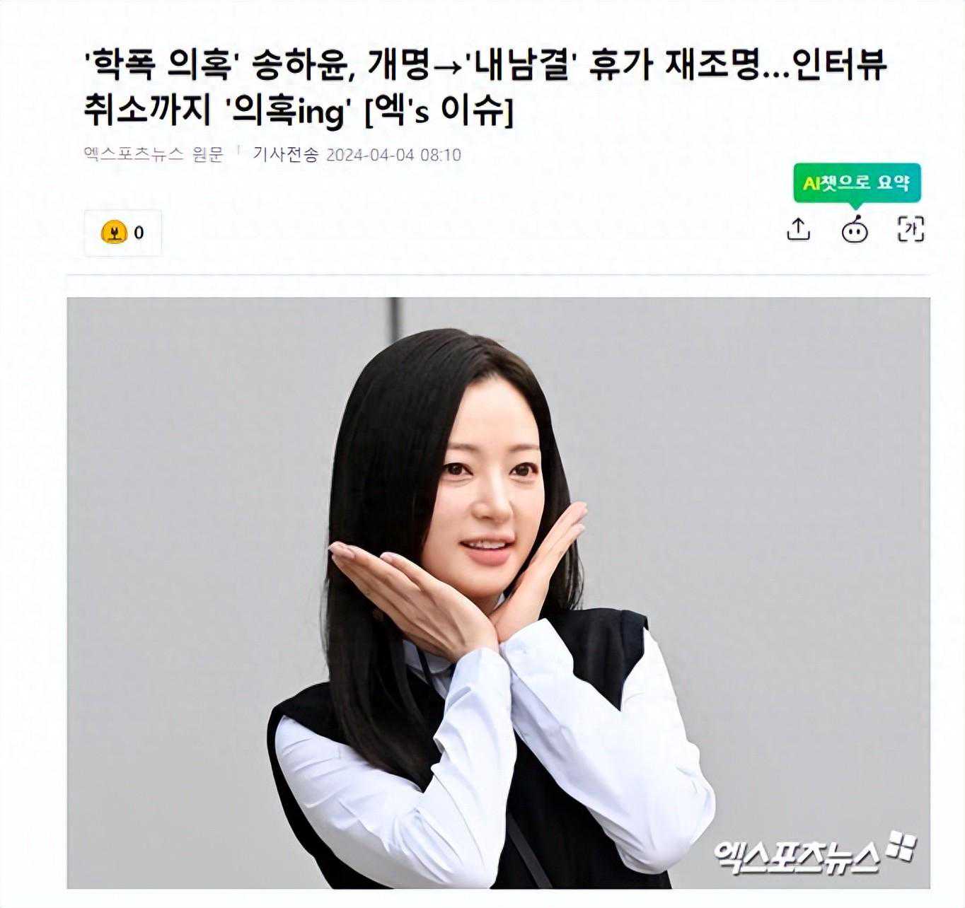 4月4日,有韩国媒体报道,韩国知名女星,演员宋昰昀因涉嫌校园霸凌,而成为韩网每天的热门话题,随着更多的爆料,演员宋昰昀与校园霸凌无关的更多过去,以及各个方面正在被韩国网友们重新审视。