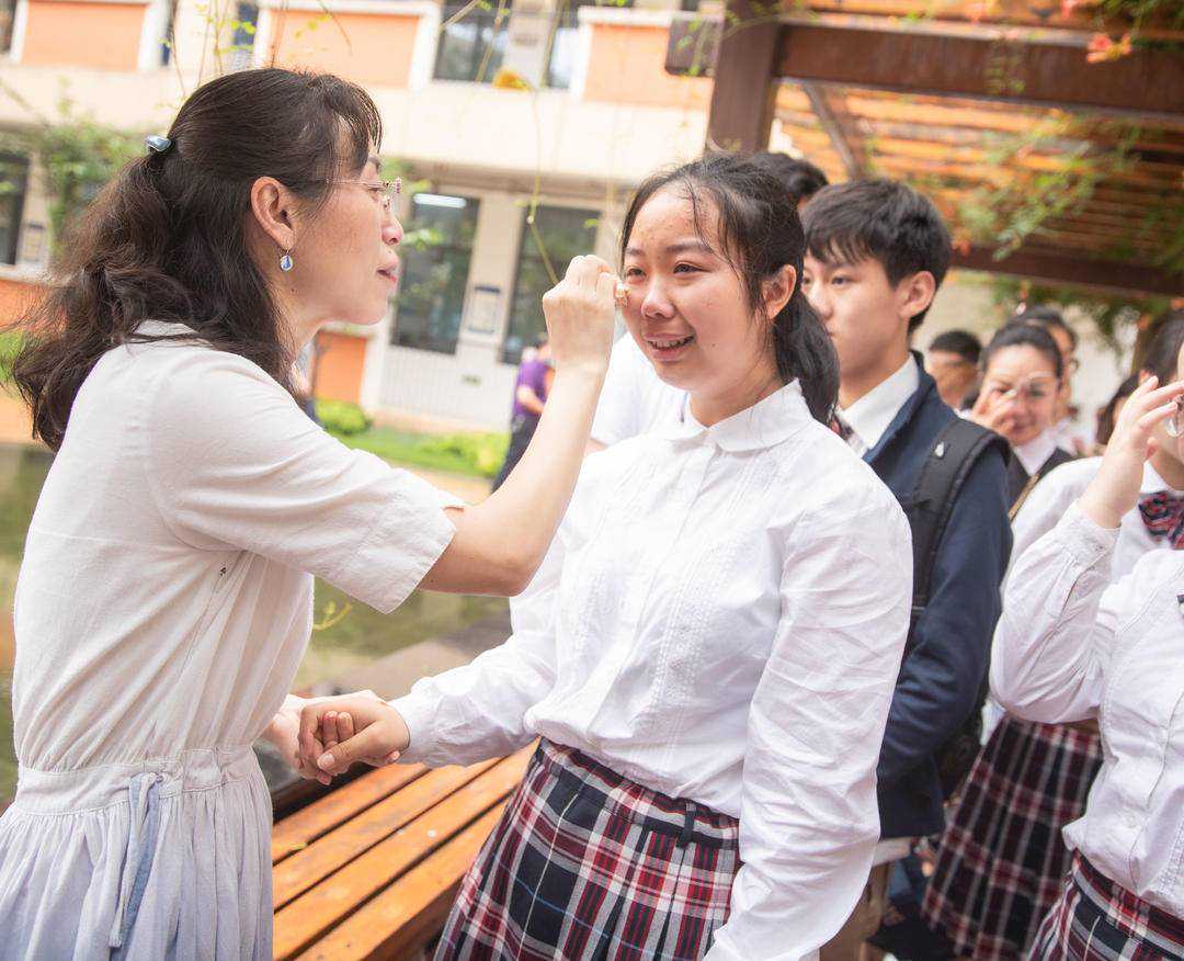 台上,和学生们朝夕相处了三年的“老班”们金句不断,而台下,学生们也变身最强“应援团”,为自己的班主任送上真挚告白。“曹老师,我们爱你!”“老唐,谢谢你!”每当班主任寄语结束,本班学生便集体起立,大声送上最动听的感谢,毕业典礼秒变大型告白现场,场面温馨又感人,记者注意到,台下不少学生更忍不住拭泪。