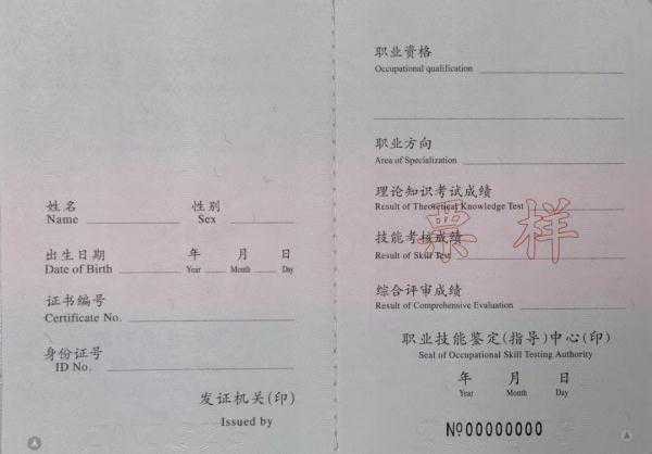 最后,奉送大家几张职业资格证书的样书,真证长这样!
