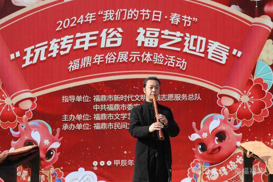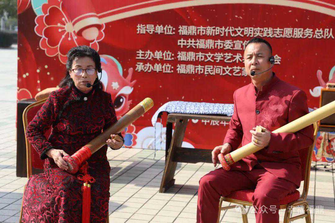 除了年俗文化展示区,现场还设有非遗文化展演区。布袋戏、嘭嘭鼓、洞箫、葫芦丝等民乐演奏、曲艺表演相继登场,福鼎著名民俗文化学者马树霞也在现场为市民朋友讲解各类非遗文化的历史渊源、社会价值等知识,让市民群众在观赏非遗表演的同时,更加深层次地了解福鼎非遗文化。