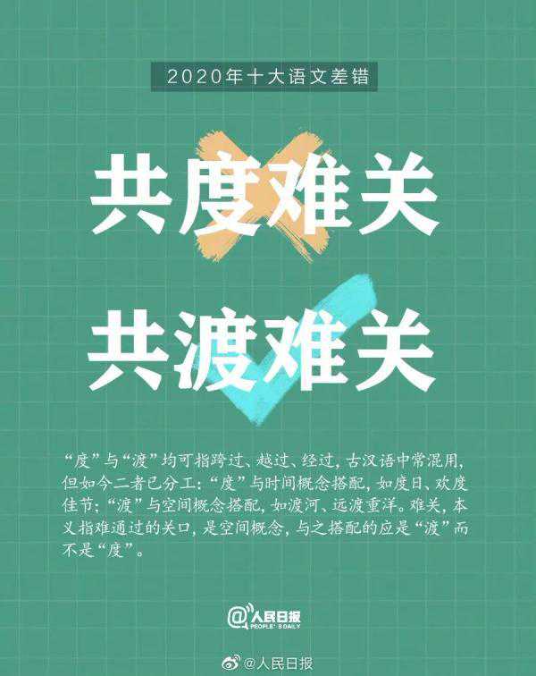 日常生活中谁没个嘴瓢或手滑打错字的时候?不过有些发音或者字你可能真的没用对不信?一起看看2020年度“十大语文差错”里面是否有你踩过的“坑”呢?近日语文界“啄木鸟”《咬文嚼字》编辑部发布了2020年十......