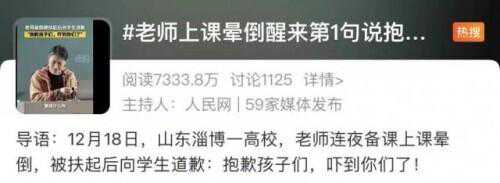 今日,话题登上热搜。据媒体报道,12月28日,位于山东淄博的山东理工大学内,谭霞老师在上思政课时晕倒,同学们看到后迅速将其扶起。谭老师恢复意识后,第一反应是给同学们致歉“抱歉孩子们,吓到你们了”。随后......