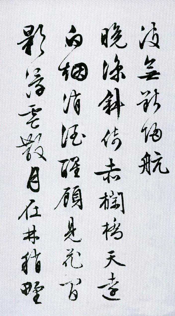 【3】波无、断归航。晚凉斜倚赤阑桥,天远白烟消。酒醒顾见花间影,浮云散、月在林稍。野