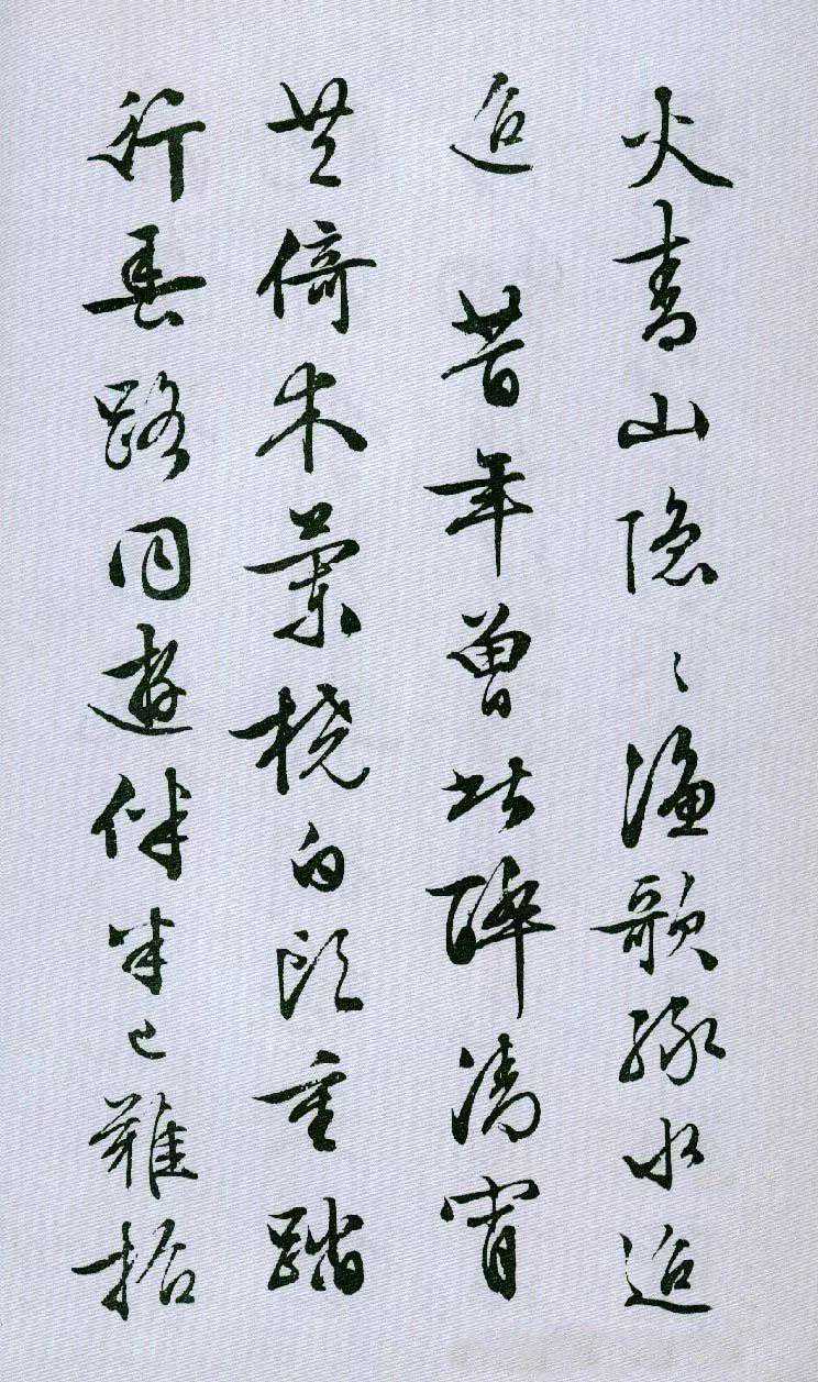 【4】火青山隐隐,渔歌绿水迢迢。昔年曾此醉清宵。共倚木兰桡。白头重踏行春路,同游伴、半已难招。