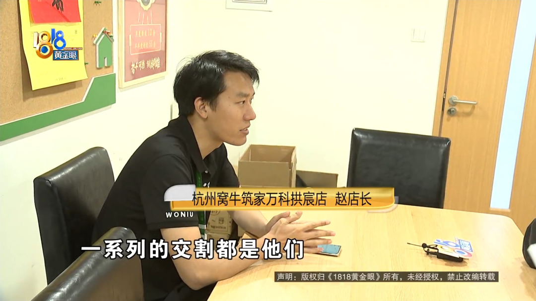 何女士的合同是在“窝牛筑家”万科拱宸店签订的,后勤管理归万家名城店负责。找到万家名城店,负责人吴店长不在,记者拨通了电话,在得知来意后,对方直接挂断了。再找到万科拱宸店,负责签约的赵店长出面进行了沟通。