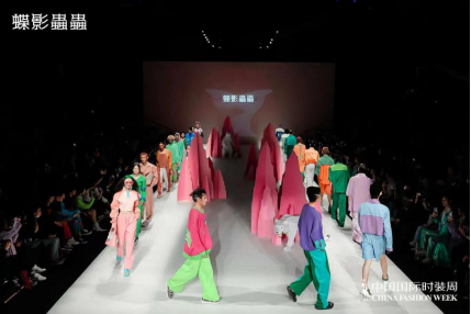 设计师品牌蝶影蟲蟲创办于2021年,是以设计师东雅儿原创设计的鲜明印花为特色的时装品牌。其品牌logo为红发波普风格自画像,设计师东雅儿由此创作出一系列四方连续自画像logo印花,独具安迪·沃霍尔式波普创作手法,应用于各种材质面料,款式前卫潮流,配合秀场红发自画像妆容,鲜明的色彩活力四射。