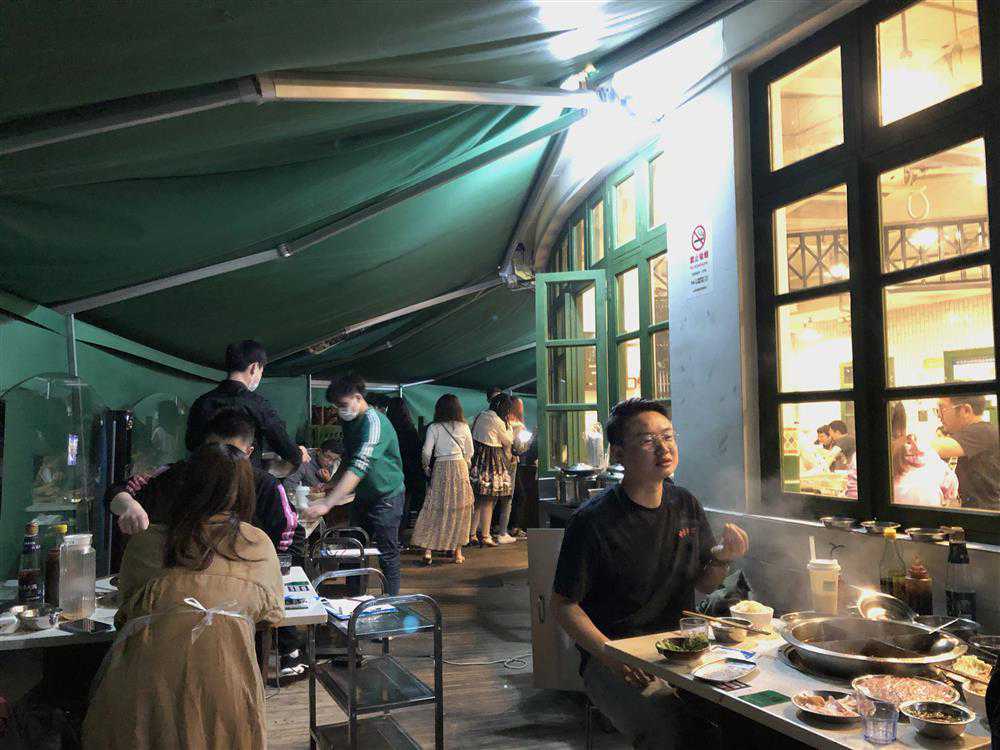 当晚6点,记者到达火锅店时,店外已经搭起一圈绿色大棚,棚内是一张张双人小桌,用以扩充座位。记者走近询问哪里取号,棚内端着盘子的服务员探出脑袋:“已经停止取号啦!今天是吃不上了!”