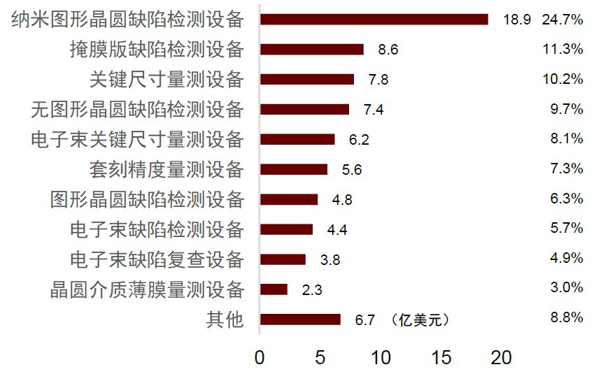 图表:2020年半导体量检测设备市场各类设备占比