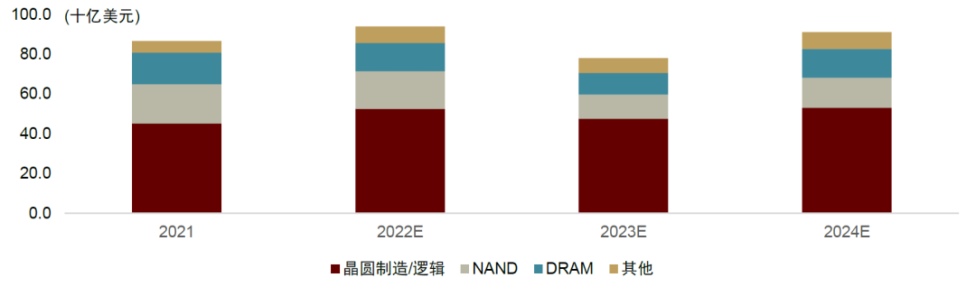 考虑到先进制程和成熟制程的设备需求在2022年仍然维持了较为强劲的需求,SEMI预计2022年晶圆制造和逻辑领域的设备销售额预计将同比增长16%,达到530亿美元,占晶圆厂设备总销售额的一半以上。同时SEMI这两个领域的投资预计将在2023年减少,导致该细分市场销售额预计下降9%。