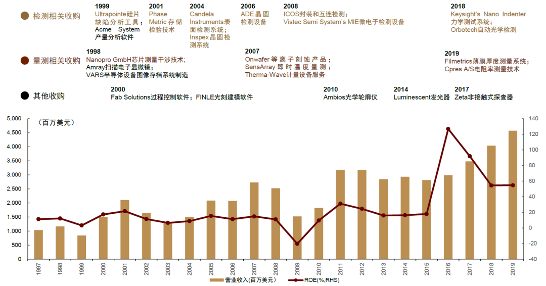 大举并购期(1997-2019):多次并购全面覆盖半导体前道量检测